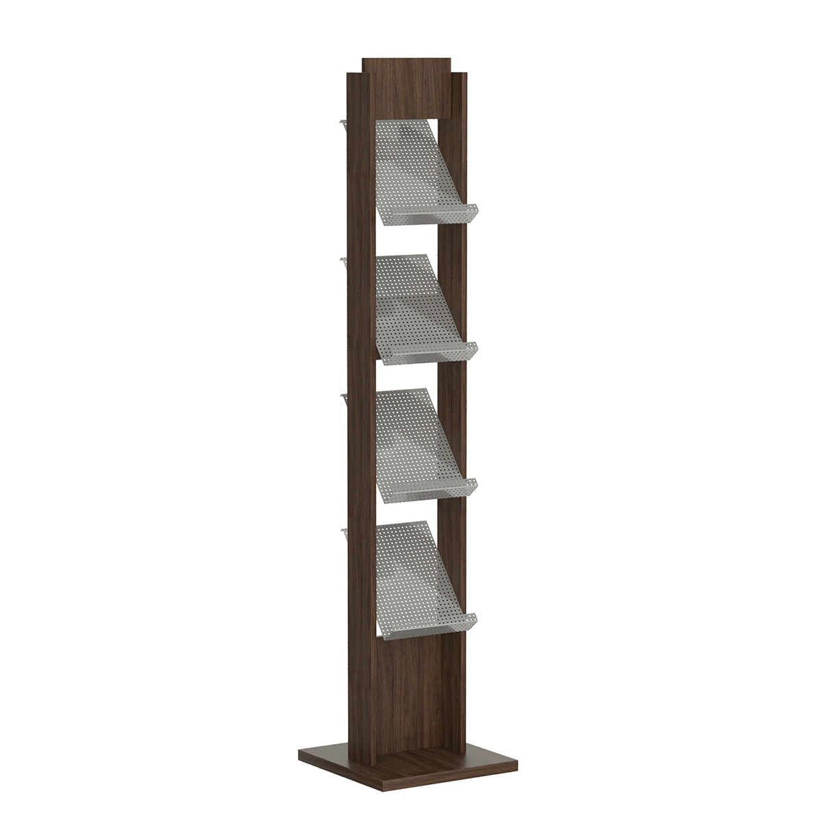 Стойка выполнена из ЛДСП, укомплектована 4-мя карманами для печатной продукции формата А4 глубиной 50мм из перфорированного металлического листа. Фриз 150х250 и информационное поле у основания стойки - для вашей рекламы.