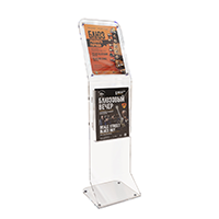Рекламная стойка из акрила. Незаметная и функциональная. В комплект входит карман для печатной продукции формата А4, информационное поле формата А4 с креплением на шильдиках. Рекомендуем изделие для автосалонов и торговых галерей. Хорошо комбинируется с буклетницами, световыми панелями из акрила.