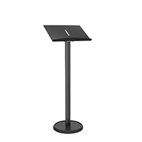 Стойка Маэстро рассчитана на разворот каталога формата А4. У основания лотка из сатинированного акрила есть разъемные кольца для брошюровки. Каталог новой коллекции или меню в стиле вашего ресторана доступны гостям. А если кольца для брошюровки не крепить, получится полноценное поле формата А3 для корпоративной газеты. В едином ансамбле с Маэстро в черном цвете выступают и другие стойки на круглом основании.