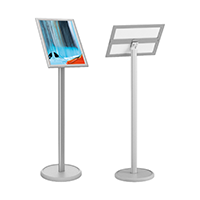 Отщелкивающийся профиль обеспечивает легкую смену изображения. А с помощью поворотного механизма меняйте расположение рамки - вертикально или горизонтально. Стойка устойчива за счет использования композитного основания.