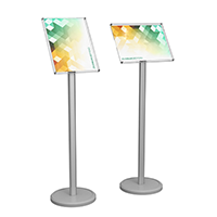 Информационная стойка с наклонной рамкой-карманом и легкой сменой изображения. Поворотный механизм позволяет менять расположение рамки - вертикально или горизонтально. Стойка устойчива за счет использования композитного основания. Вы сможете без труда подобрать к ней другие изделия, выполненные в едином стиле. Добавит стиля и лоска вашему офису и торговому залу.