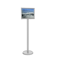 Информационная стойка с горизонтально закрепленной алюминиевой рамкой формата А3. Отщелкивающийся профиль обеспечивает лёгкую смену изображения. Защитный вкладыш-антиблик в комплекте. Стойка устойчива, выглядит стильно и аккуратно. Легко комбинировать с другими стойками в едином стиле на круглом основании.