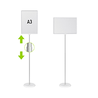 Возможно вертикальное и горизонтальное положение рамки, работает на две стороны. Адаптируйте под любую высоту от 600 до 1000 мм с помощью телескопической трубки. Для надписей маркерами и мелками вместо постера используйте меловую доску (приобретите дополнительно).