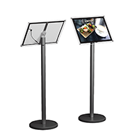 Информационная световая стойка с поворотным механизмом для смены расположения рамки. Угол наклона рамки 45 градусов. Окантовка рамки выполнена в цвет стойки. Низкое электропотребление. Технические условия эксплуатации: рабочая температура-30С+50С, источник питания V 220B/12B, период эксплуатации до 40 000 часов, класс защиты по климату IP22. Работает в любое время дня и ночи. элегантна и добавляет стиля вашему заведению.
